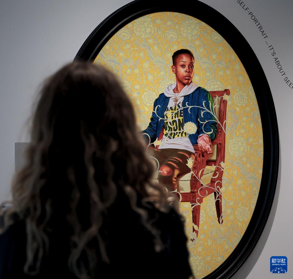 4月15日,在英國首都倫敦,一名女子在維多利亞與阿爾伯特博物館東館媒體日活動上觀看影片。